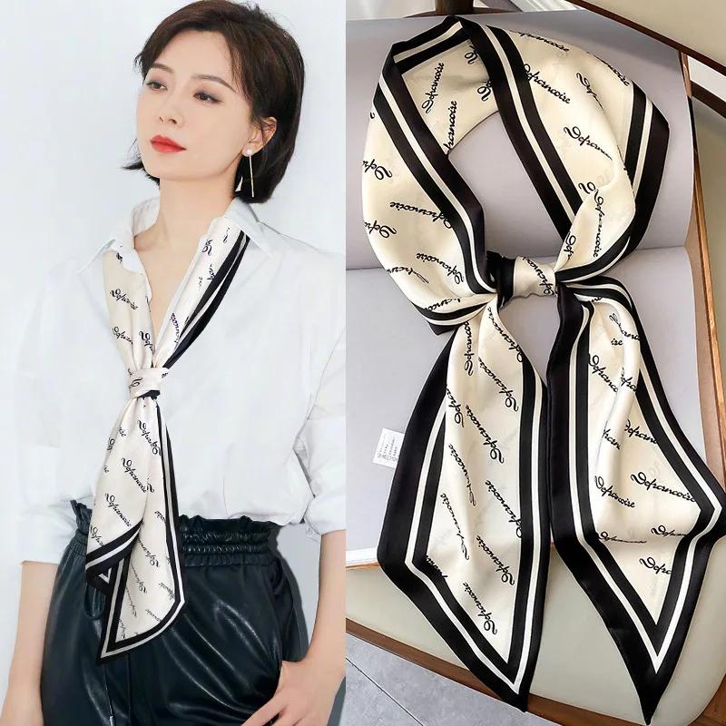 Mode Blauer Druck Seidenschal Damen Weicher Satin Pferdehaarband Schräges Halstuch Büro Hijab Stirnband Foulard Taschenbänder Geschenk