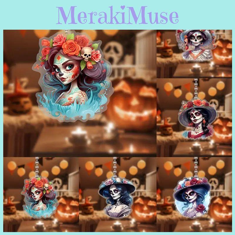 Entzückende Cartoon-Skelettpuppe Acryl-Flachanhänger Perfekt für Halloween- und Weihnachts-Autodekoration