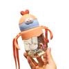 Neuer Kinder-Trinkbecher mit Strohhalm, Griff und Schultergurt, PC-Material, 450 ml, Lila/Rosa/Grün