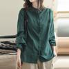 Vintage Baumwoll-Leinen-Hemden und Blusen Sommer Herbst Lässiges Langarmhemd Rüschen Button Up Shirt Übergroße Blusen Tops
