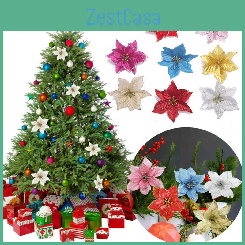 Elegantes 10er-Set Weihnachts-Groß-Poinsettia-Glitzer-Blumenarrangement für Bäume