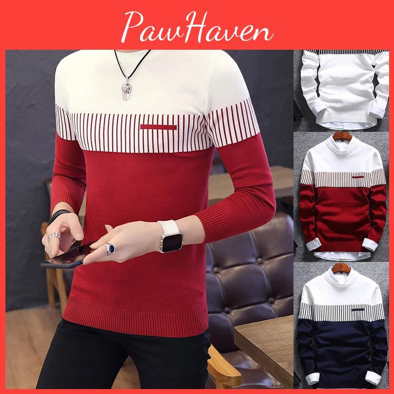 Men's Casual Round Neck Striped Knitwear Jumper With Slim Fit Design