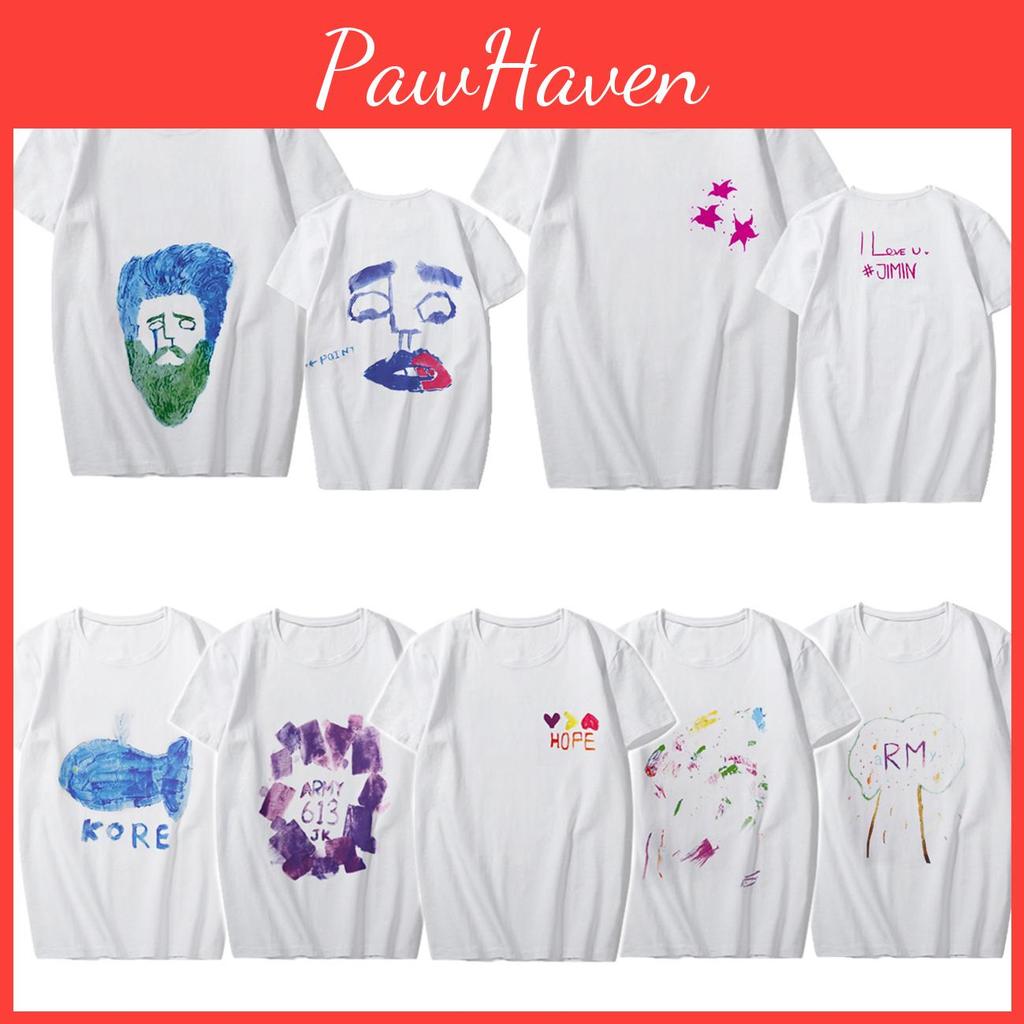 Kpop Graffiti BTS Baumwoll-T-Shirt Suga Jimin V Grafik-Shirt Unisex Paar-T-Shirt Größe