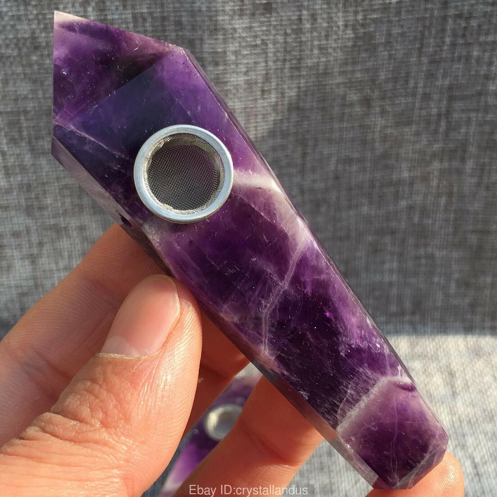 Natural Dreamy Amethyst Smoking Pipes Elegant Quartz Crystal Point Obelisk Wand