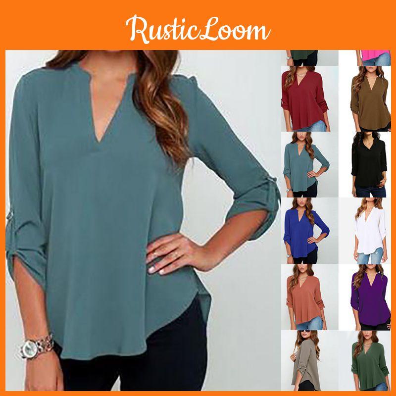 Stilvolles Damen Casual Langarm V-Ausschnitt T-Shirt Pullover Tunika Bluse Optionen