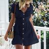 Stylish Women Button Down V Neck Mini Tea Dress In Soft Comfortable Fabric Perfect For Summer Days