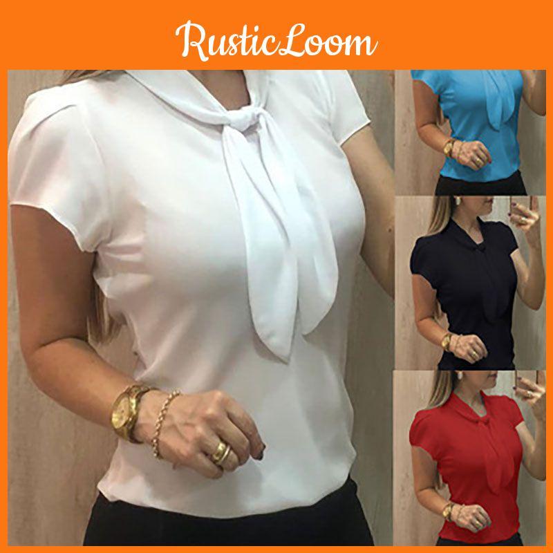 Elegant Women Short Sleeve Bow Chiffon T Shirt Blouse With Breathable Comfort For Ladies