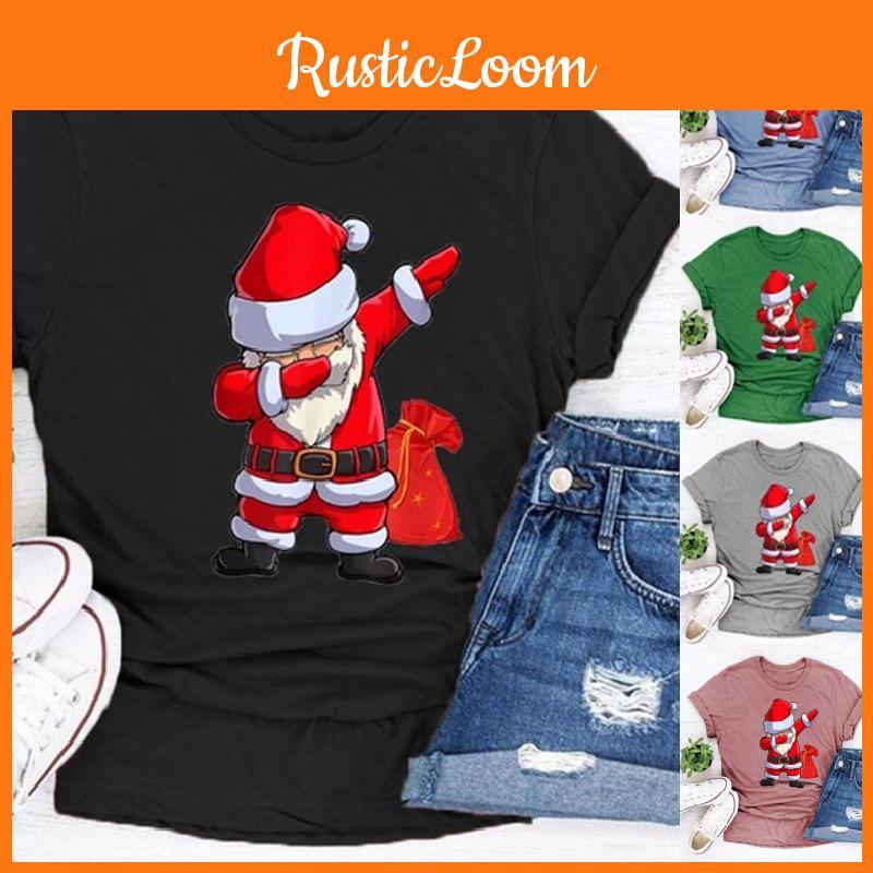 Women Santa Claus Dabbing Print T-shirt Soft Comfortable Christmas Short Sleeve Tee