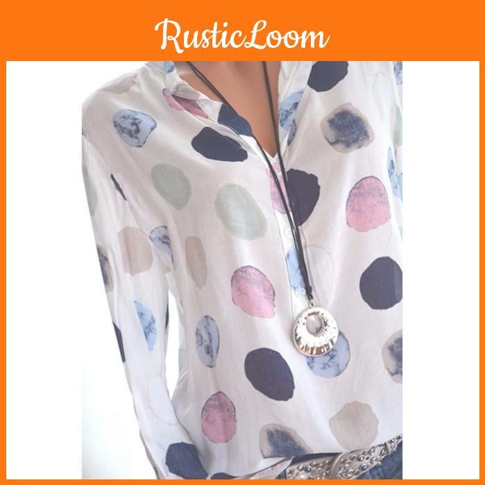 Elegant Women Fashion Polka Dots Print Chiffon Blouse With Long Shirt Sleeves