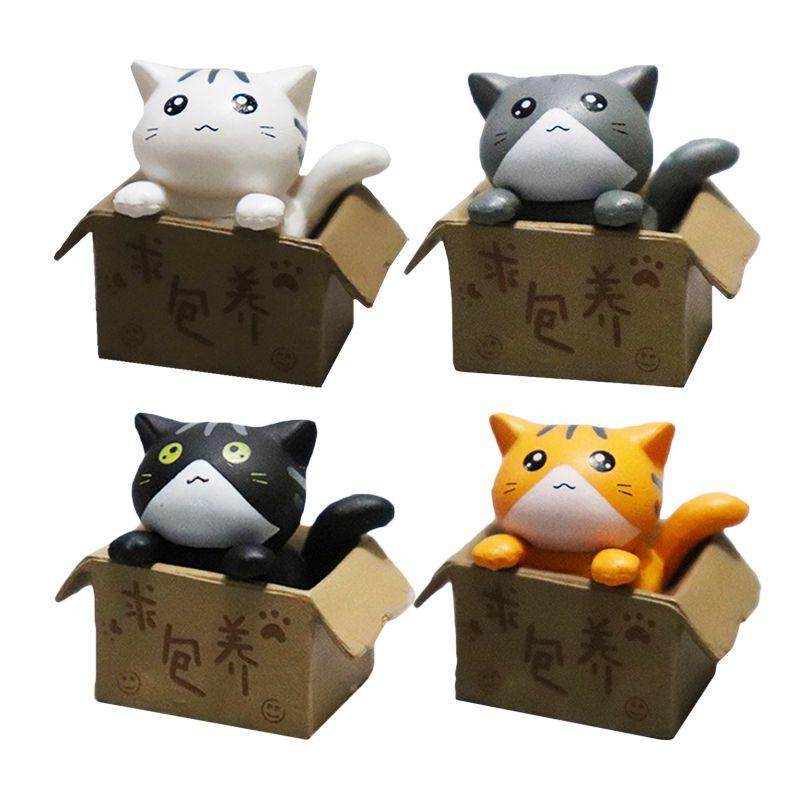Niedliche Cartoon-Katzenfiguren zum Sammeln und Dekorieren Set mit 4