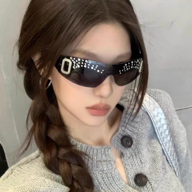 Y2K Rhinestone-Encrusted Large-Frame Sunglasses for Women