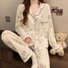 Dieses entzückende Pyjama-Set ist perfekt für junge Mädchen, die Komfort und Stil lieben.. Gefertigt aus luxuriösem Milchseiden-Kreppstoff, bietet das Set ein weiches und atmungsaktives Tragegefühl, was es ideal für gemütliche Heimkleidung macht.. Die Strickjacke hat ein charmantes Reversdesign, und die langen Ärmel bieten zusätzliche Wärme während kühlerer Frühlingsnächte.. Dieses Set sorgt für einen erholsamen Schlaf und hält Ihren kleinen Liebling stilvoll warm.