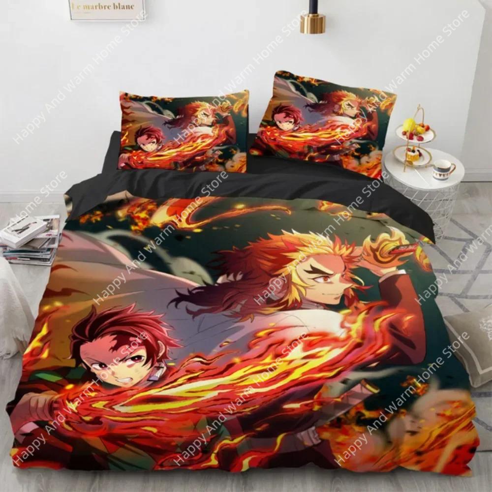 Doppel Einzel Queen King Vollgröße Bettbezug Kamado Nezuko Bettwäsche Sets Anime Demon Slayer Tagesdecke Für Teenager Mädchen Mode