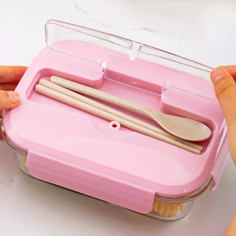3/2/1-Fach Hitzebeständige Glas Lunchbox mit Besteck Auslaufsicher Büro Luftdichte Lunchbox Bento Box Mikrowellengeeignet