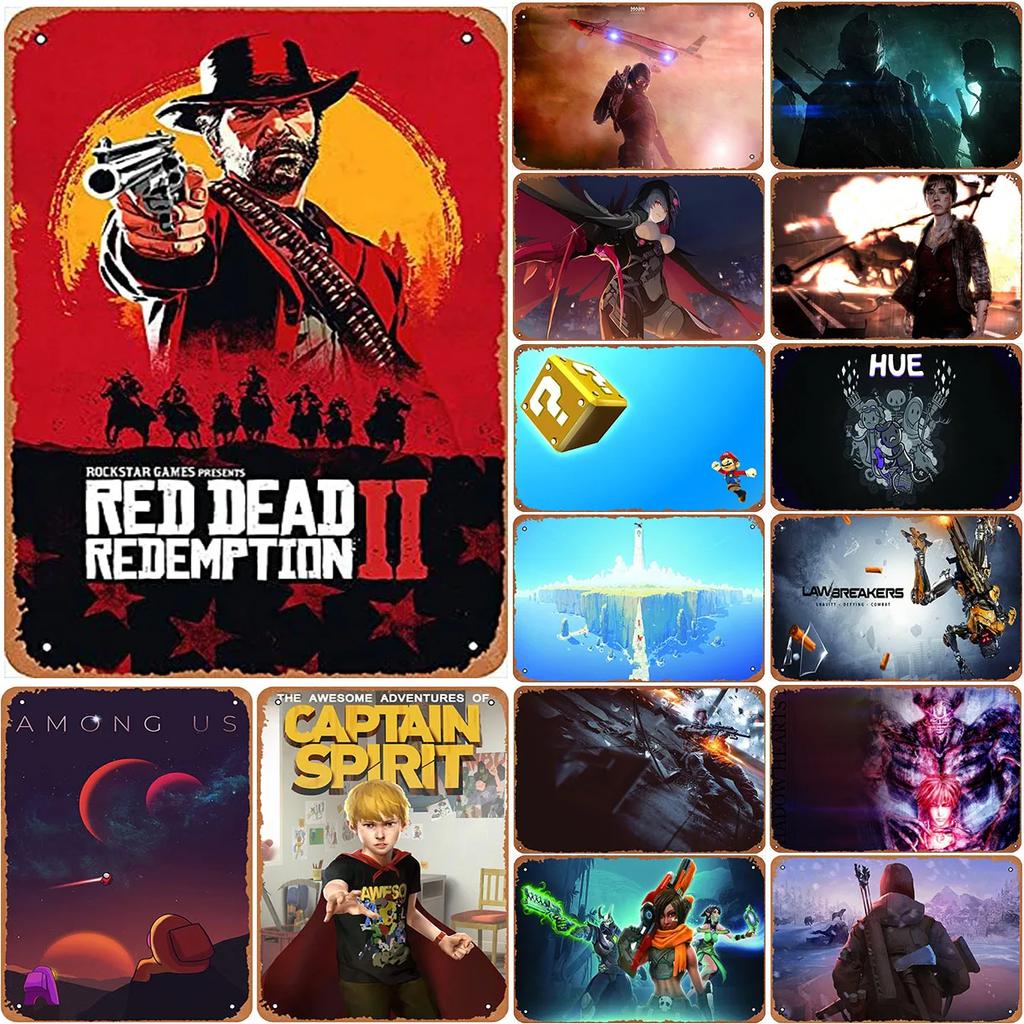 Klassische Videospiel-Deko: Vintage-Metallschilder mit Red Dead Redemption-Motiven, lustige Poster, Wanddekoration für Bar, Pub, Männerhöhle