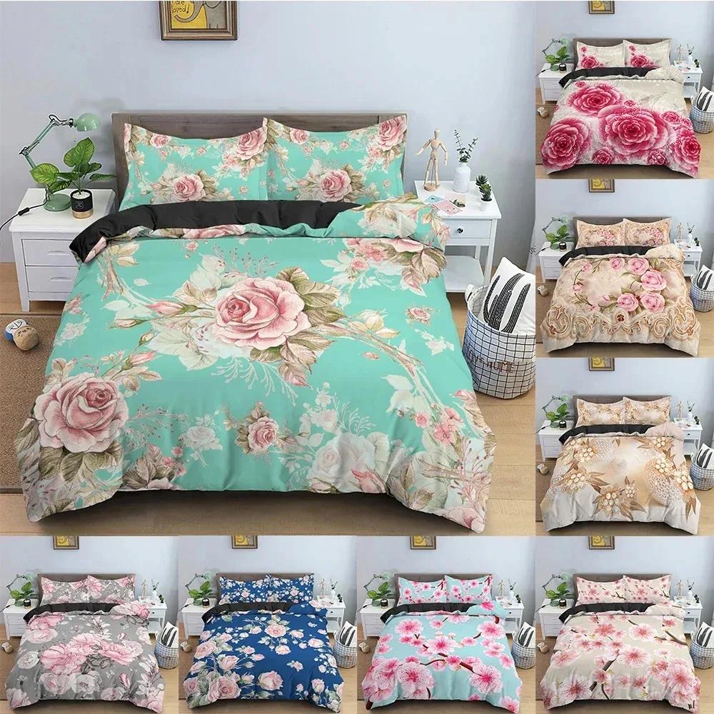 Flowers Duvet Cover Set Floral Pattern Comforter Cover Bedding Set Personality Quilt Cover With Pillowcase Queen King Bedclothes