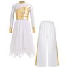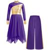 Mädchen Liturgisches Tanzoutfit Langarm Colorblock Metallic Lyrisches Kleid Weitbeiniges Hosen-Set