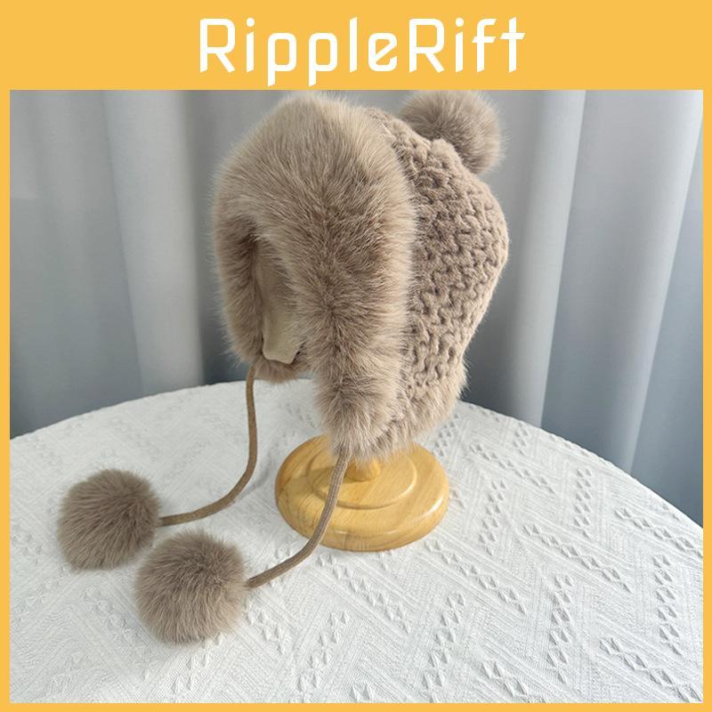 Winter Knit Beanie Hat With Earmuffs For Women Breathable Windproof Urban Style