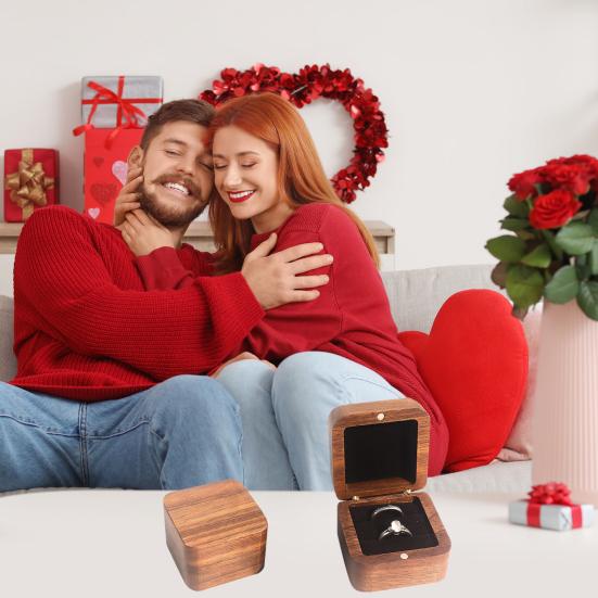 Ringaufbewahrungsbox Exklusive Aufbewahrungskassette für Verlobungsringe Samtgefüttert Walnussholz Quadratisches Design Kompakter Schmuckorganisator