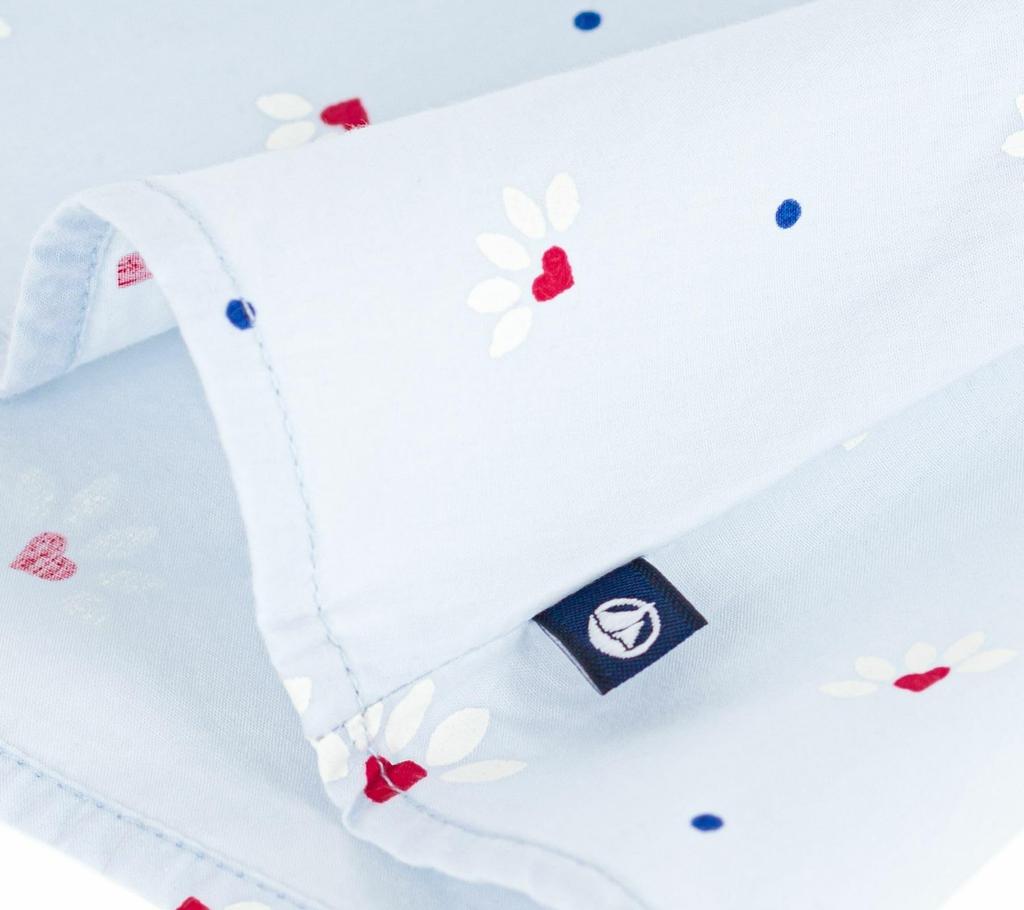 This short-sleeved blouse features a cute heart pattern. Made from eco-friendly, soft poplin, it's comfortable to wear. The ruffles and gathers around the chest add a touch of design. The back opens wide with snap buttons, making it easy to change outfits when going out! This recommended item pairs perfectly with denim and skirts. *The print is not permanent and may crack due to rubbing or friction, or may fade or come off after repeated washing. Wash separately with a mild detergent.