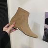 Mode Mode Eckige Zehenpartie Damen Ballerinas Stiefeletten Schuhe mit Reißverschlüssen Schuhe Lässig Weiblich Flock Damen Kurze Stiefel Schuhe