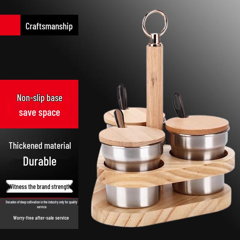 Stainless Steel Seasoning Jar Set with Triangular Wooden Rack