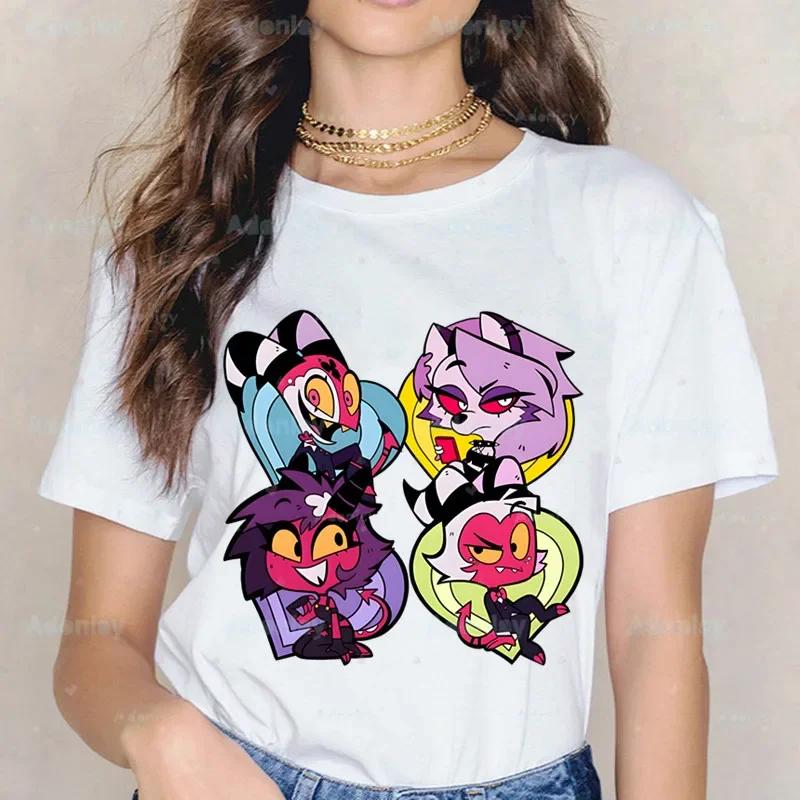Cartoons Helluva Boss T-shirts Women Summer Graphic Tees Funny Shirts For Woman Tshirts Crew Neck Harajuku Tops