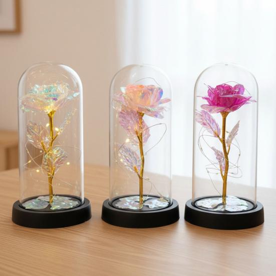 Exquisite Dome Display: The artificial rose is elegantly encased within a clear dome, showcasing every delicate detail while effectively protecting the flower from dust and damage. This design preserves the pristine beauty of the rose, making it a timeless decorative piece that is over time.