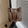 Stylish Vintage Checkered Bucket Bag For Women Large Capacity Fashionable Casual Shoulder Handbag