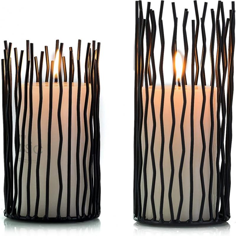 Set of 2 Metal Column Candle Holders, LED Flameless Electronic Black Table Candle Holders, Metal Can