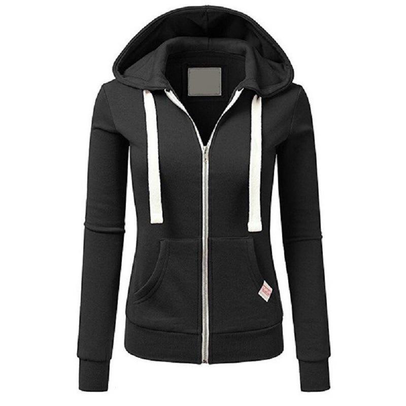 Damen Frühling und Herbst Persönlichkeit Schlank Sweatshirt Einfarbig Mit Kapuze Reißverschluss Sportmantel
