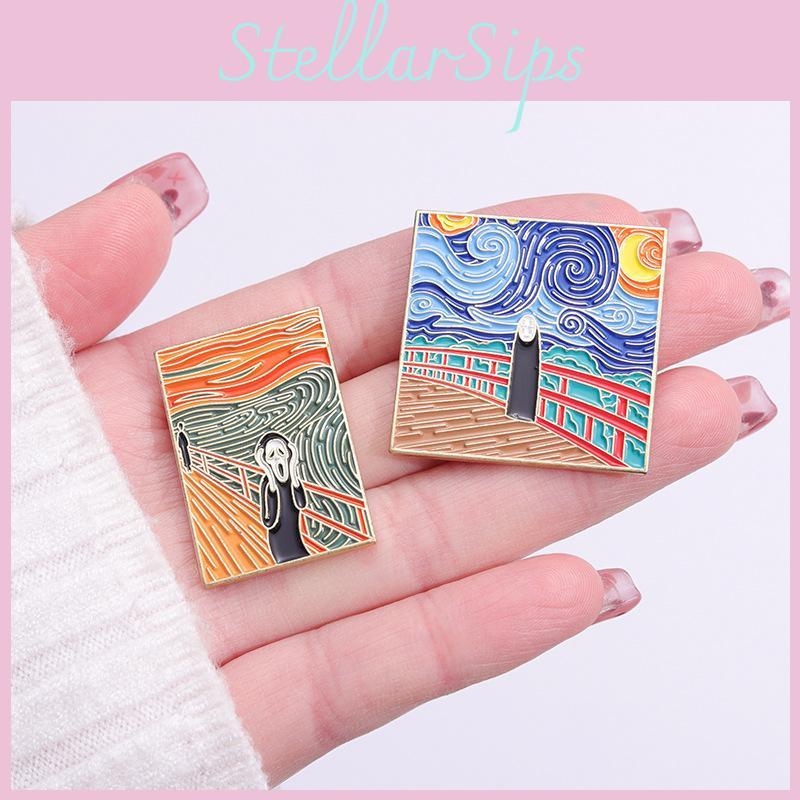 Creative Retro Oil Painting Cat Waves Brooch Charming Alloy Pin For Men And Women