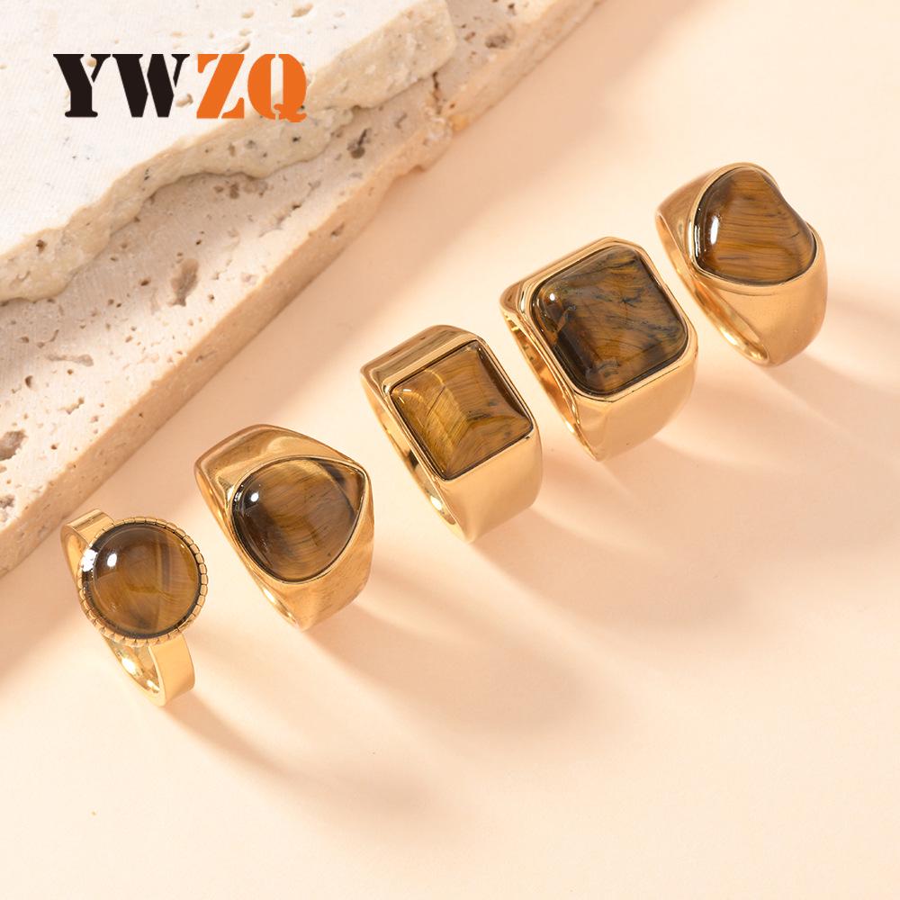 Edelstahl Tigerauge Geometrisch Retro Partnerring