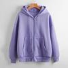 Women's Casual Fleece Zipper Jacket Long Sleeve Loose Solid Color Sweatshirt Top