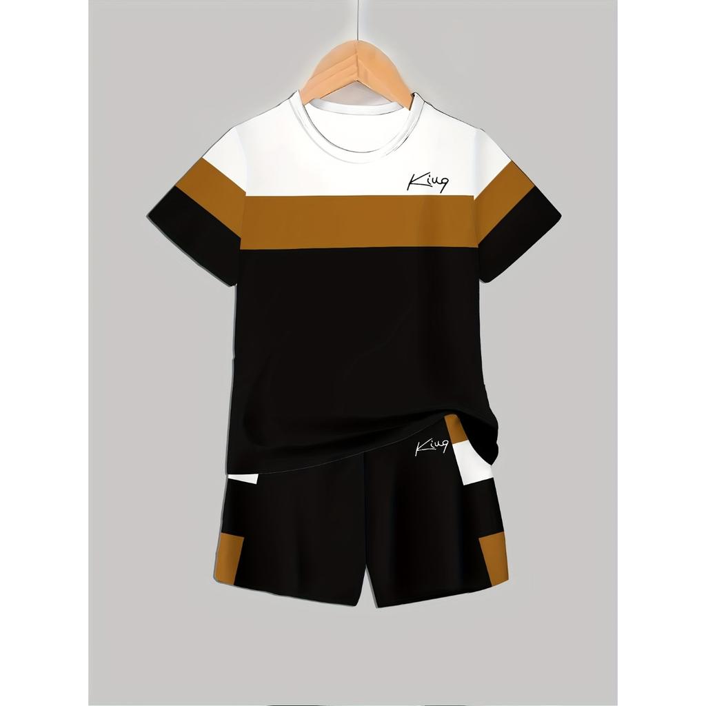Boys Suit Fashion 3D Printed Casual Pullover Short Sleeve Shorts T Sweatshirt, BoysOutdoor T-Shirt shorts Set, Perfect for Outdoor