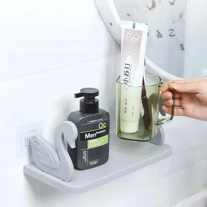 1-4PCS Wall Mounted Swan Storage Shelf No Drilling Rack Durable Plastic Kitchen Bathroom Towel Organizer Space Saver