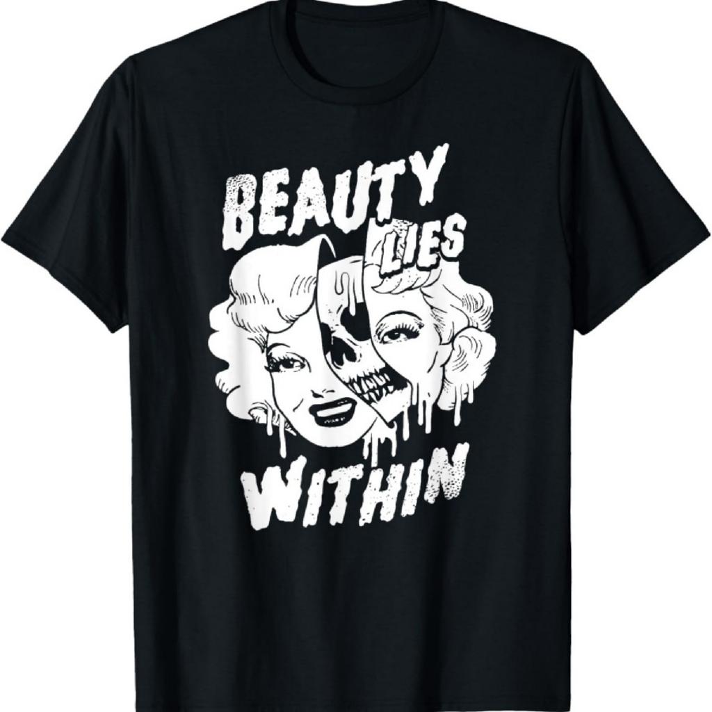 Schönheit liegt im Inneren Glamour-Make-up mit tropfendem Schädel im Inneren T-Shirt