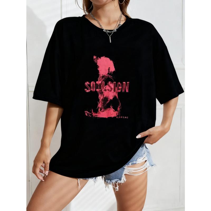 Weißes Oversized T-Shirt Mit Rotem Bären Und Seelenzeichen Print Für Freizeitkleidung