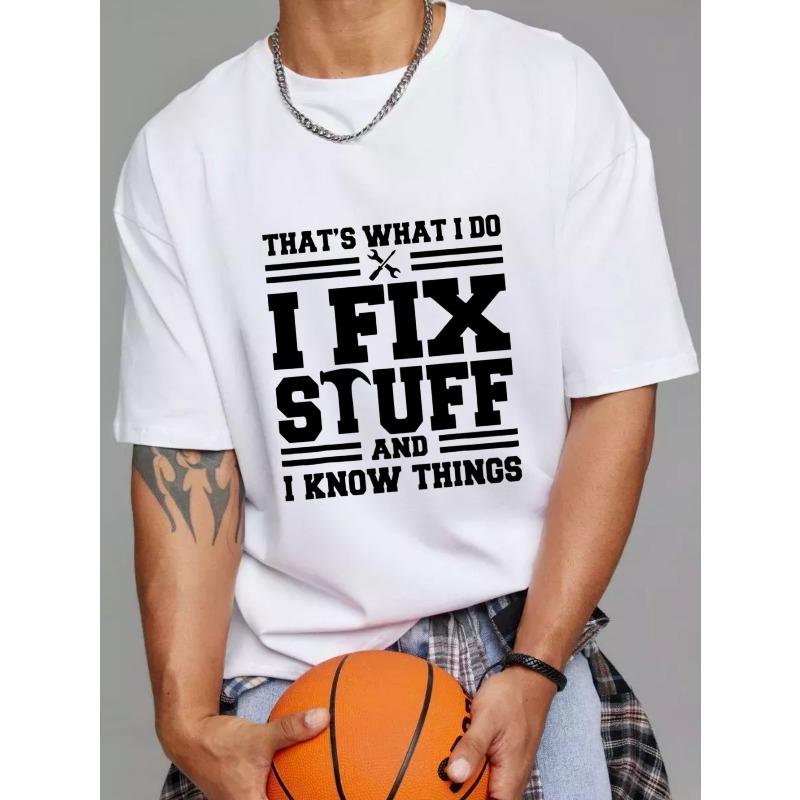 Weißes T-Shirt mit I Fix Stuff And I Know Things Aufdruck für Herren Freizeitkleidung