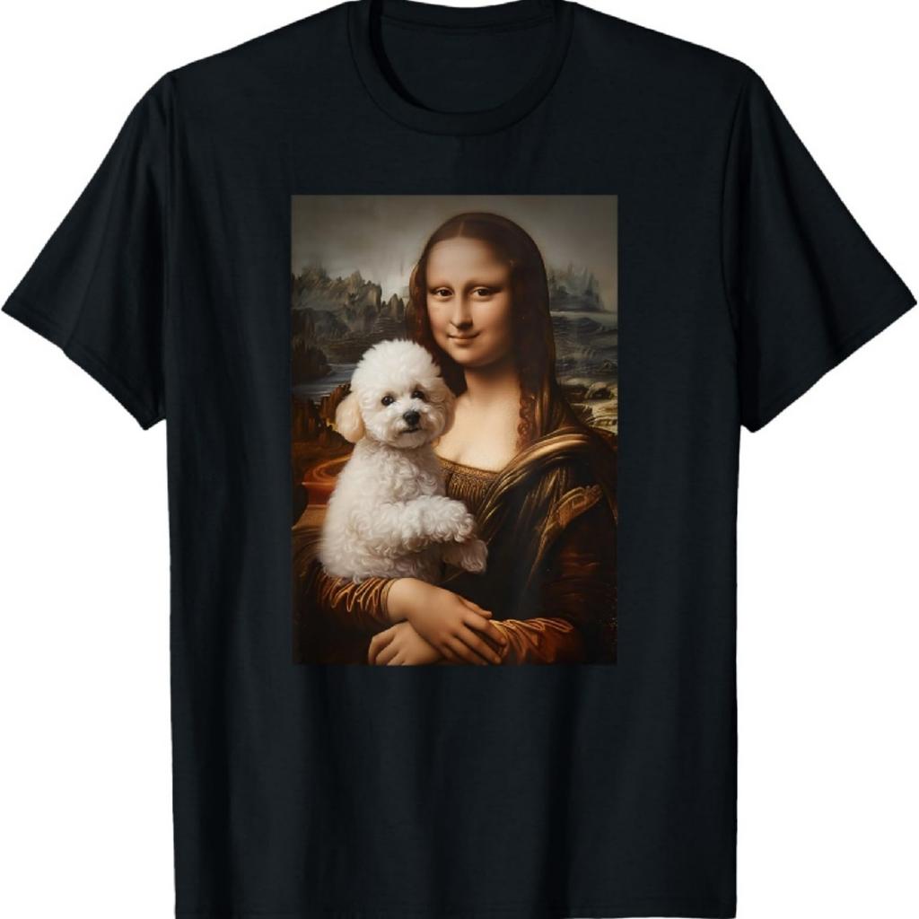 Bichon Frisé Mona Lisa Gemälde Kunst Hundemama Papa T-Shirt