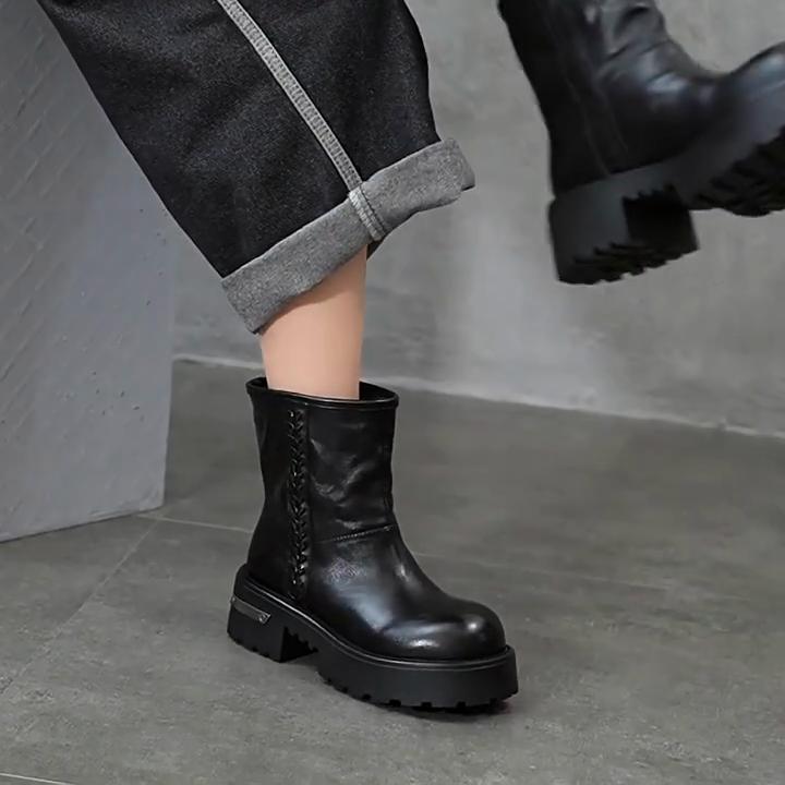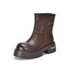 Johnature Genuine Leather Thick Soled Thick Heel Mid-calf Boots Plush Warm Women's Slip-on Boots