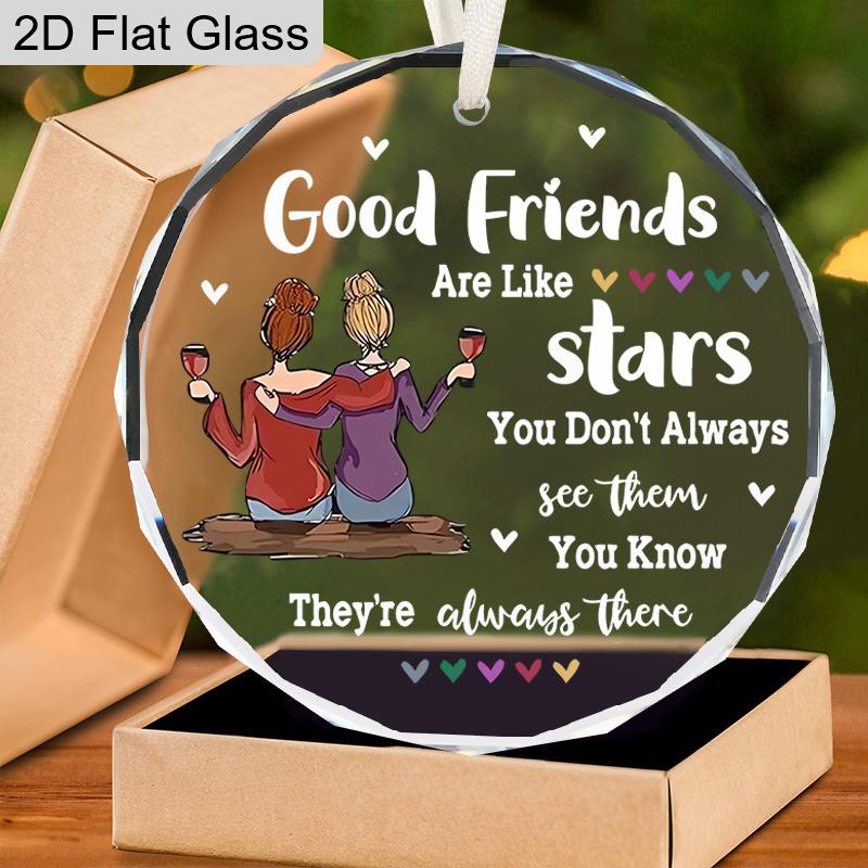 Freundschafts-Erinnerungsstück Glasornament, Design mit zwei Schwestern, die Weingläser halten, Ideale Geschenke für beste Freunde oder beste Freundinnen, Freundschaft, BFF, Seelenverwandte