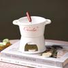 New Ceramic Chocolate Chafing Dish Cup with Fork Candle Pot Melting Chocolate Mug Tableware Creative Household Drinking Utensils