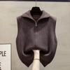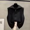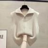 Damen Neu Frühling Herbst Stacked Tops Strickjacke Strickweste Stehkragen Doppelreißverschluss Ärmelloser Pullover