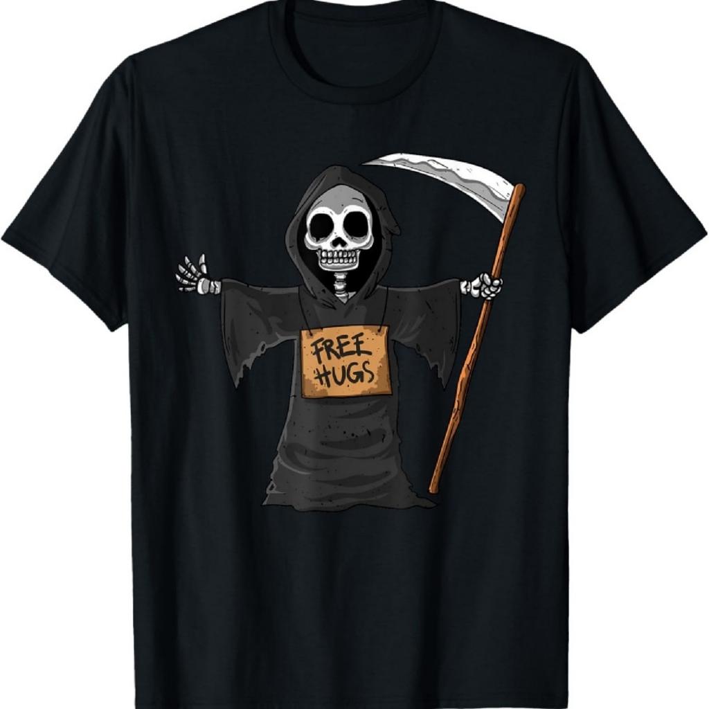 Kostenlose Umarmungen Sensenmann Halloween Party Cosplay Faules Kostüm T-Shirt