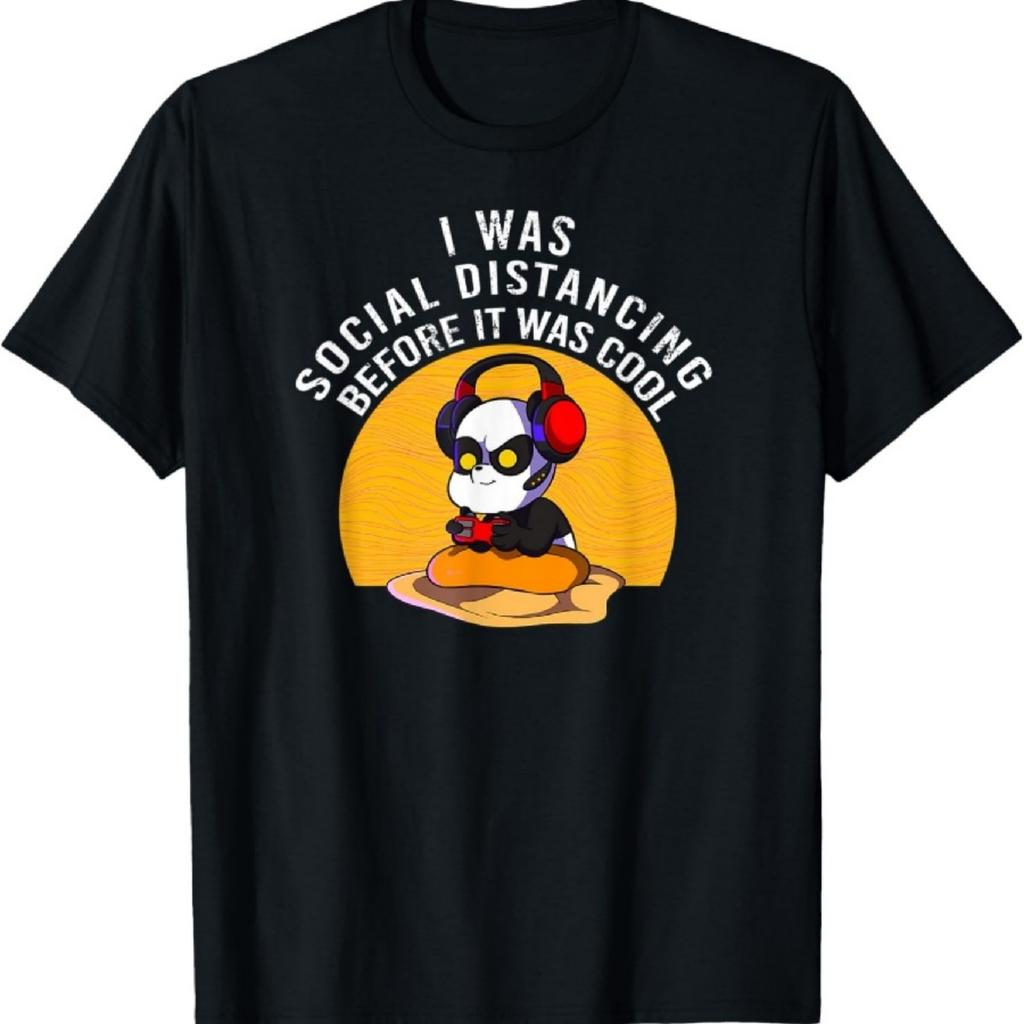 Lustiges Social Distancing Zitat Niedliches Psycho Gamer Panda T-Shirt