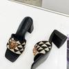 Mode High-End Diamant Damen Hausschuhe, Fischmaul hinten hohl Löwe coole Hausschuhe, Strass Hausschuhe Kette Tasche Set T36