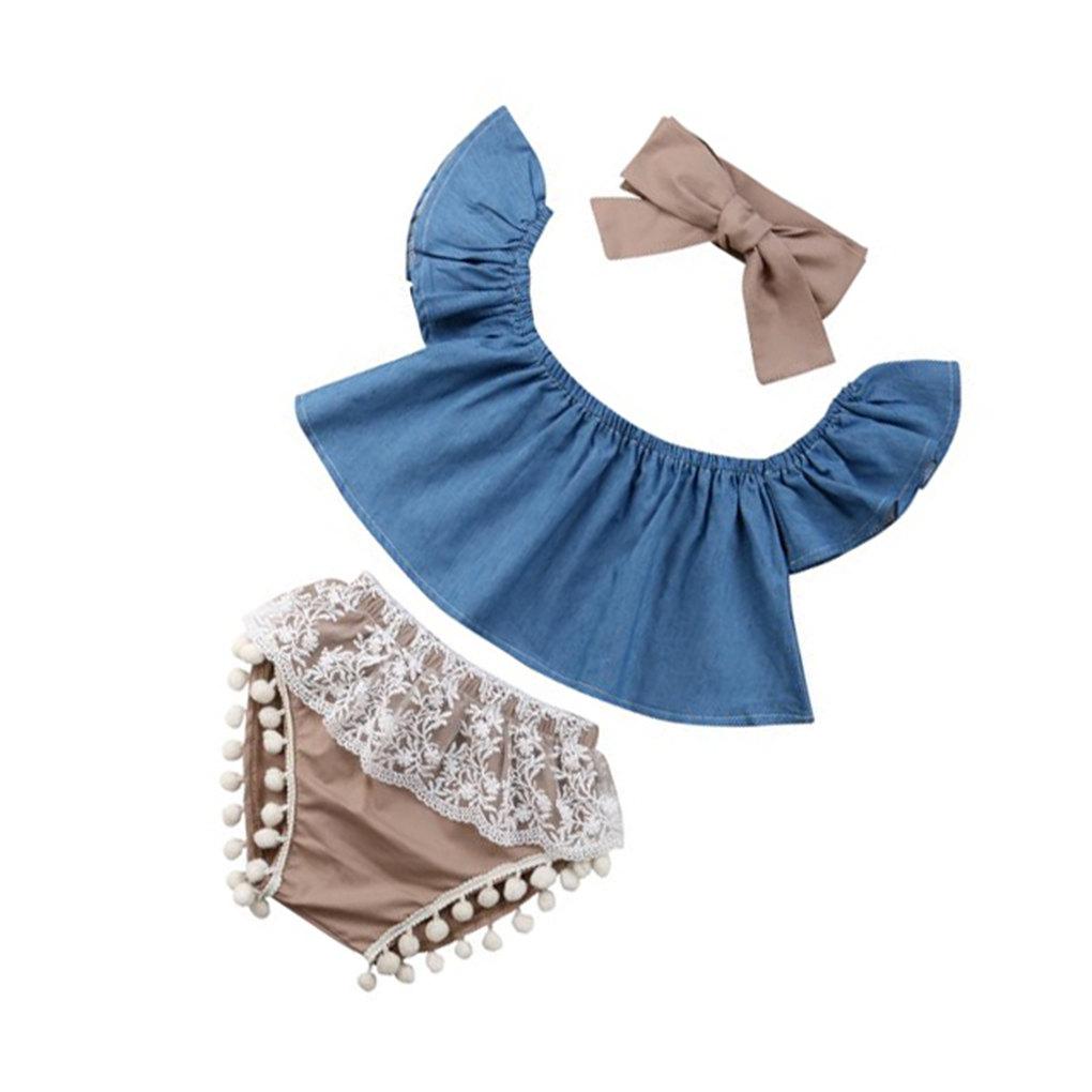 3Pcs/set Baby Outfit Set Infant Jeans Top Lace Shorts Pants Set Girls Summer Outfit Baby Photography Props With Bowknot Hairband