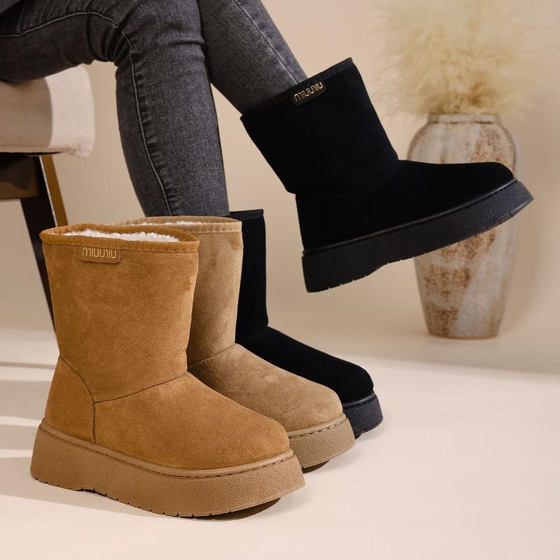 Damen Winterstiefel mit weiter Weite - Mid-Calf Plateau-Stiefel mit dickem warmem Fleecefutter, wasserdichte rutschfeste Kaltwetterstiefel