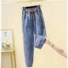 S-3XL Frauen Jeans Elastische Taille Frühling Herbst Feste Beiläufige Weibliche Lose Denim Hosen Hosen